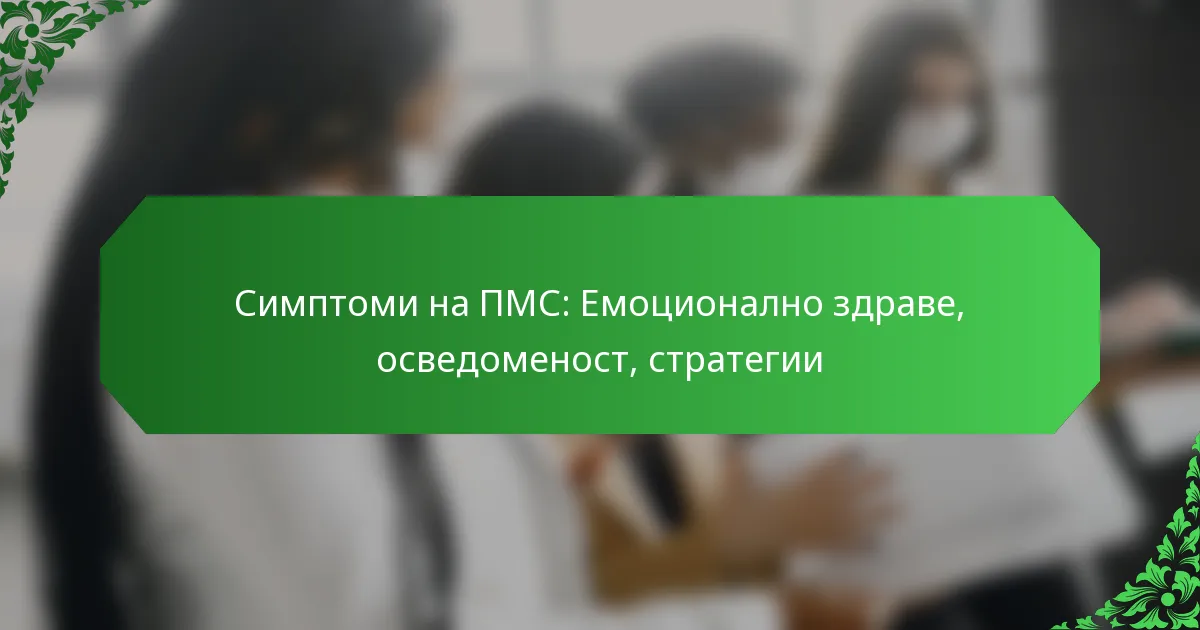 Ефективните стратегии за справяне с емоционалните симптоми на ПМС включват практики за осъзнатост, физическа активност и хранителни корекции. Тези подходи могат да помогнат за облекчаване на промени в настроението, тревожност и раздразнителност, често свързани с предменструалния синдром.