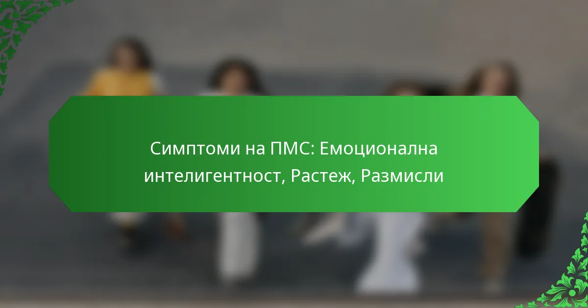 Симптомите на ПМС могат дълбоко да повлияят на емоционалното благополучие и междуличностните отношения, често проявявайки се като промени в настроението, тревожност и повишена чувствителност поради хормонални изменения. Развиването на емоционална интелигентност е от съществено значение за управлението на тези симптоми, тъй като то насърчава осведомеността за емоционалните тригери и подобрява регулирането. Чрез размисъл върху тези преживявания, индивидите могат да трансформират предизвикателствата в възможности за личностно развитие и по-дълбоко саморазбиране.